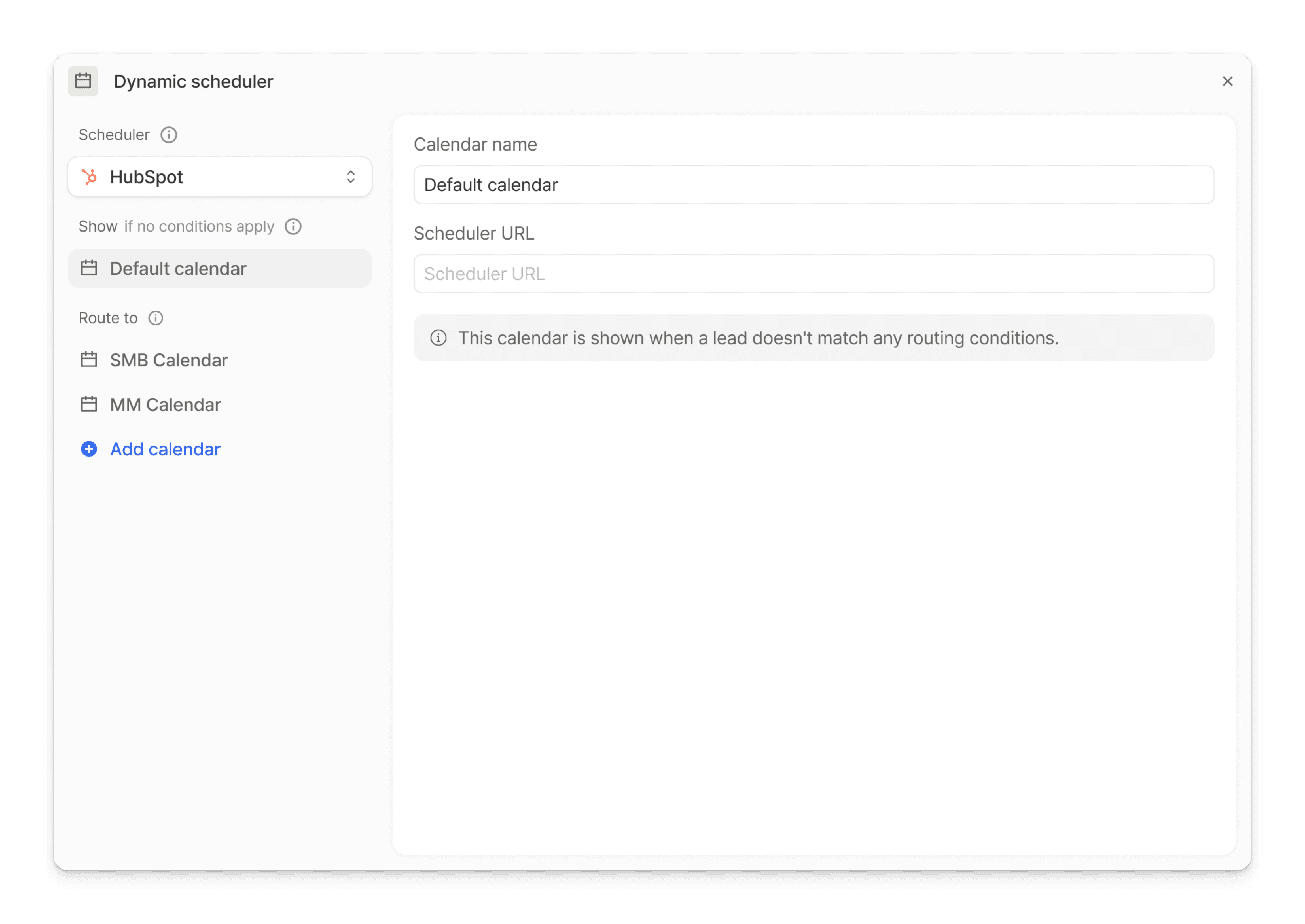 Surface shows a default fallback calendar so no lead goes unbooked. You configure this once and it catches any submission that falls outside your specific routes.
