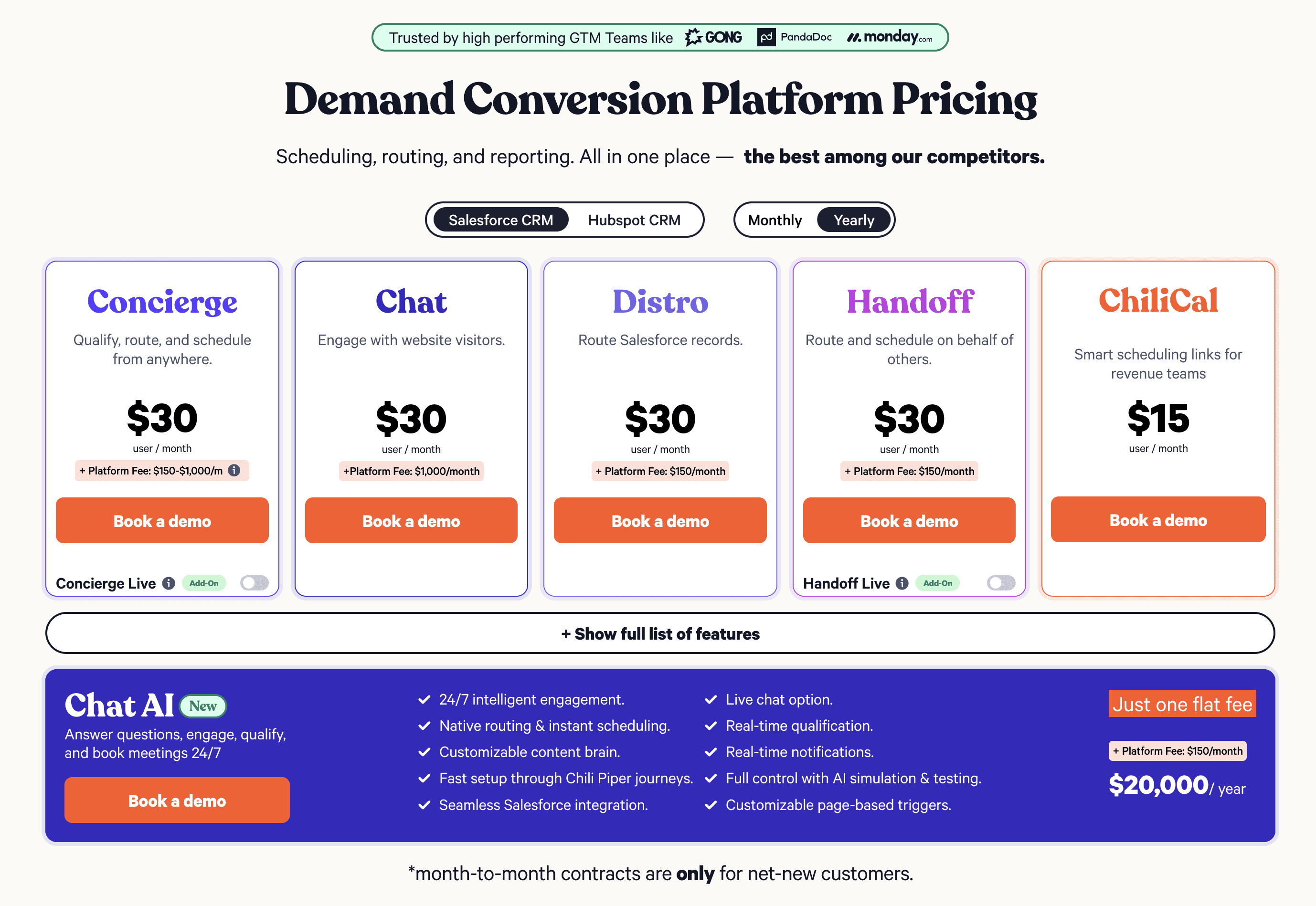 Take a look at Chili Piper's pricing page: