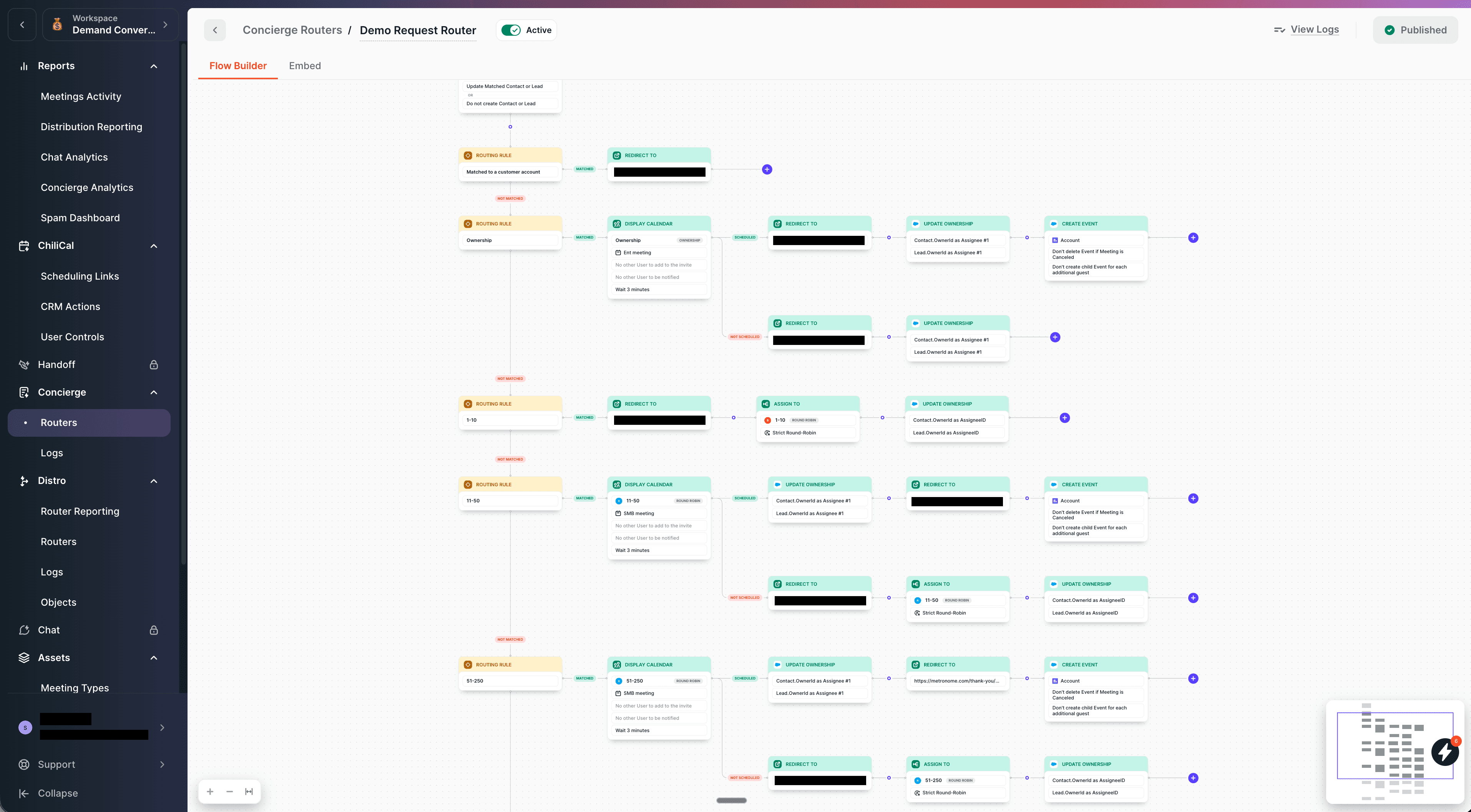 Chili Piper's routing uses a visual flow builder. For simple setups — a round robin across five reps — it's fine.